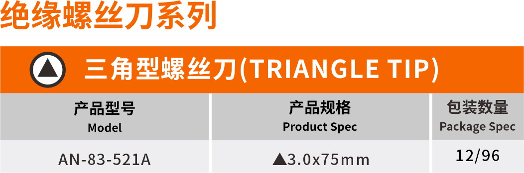 您的(de)位置:首頁>産品展示>螺絲刀(dāo)系列 >三角型槽螺絲刀(dāo)